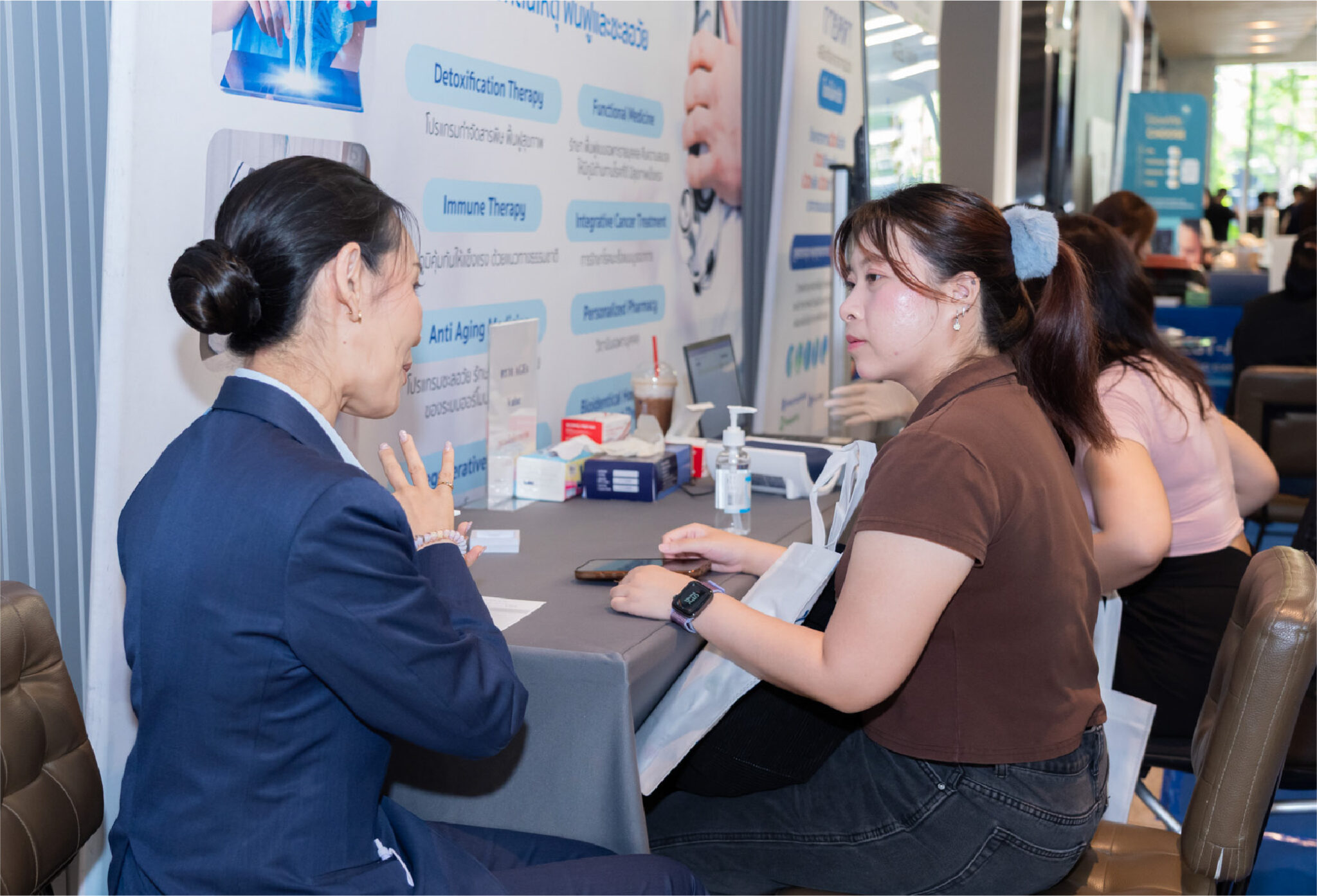 At our booth, the atmosphere was engaging and welcoming, with our team providing close, personalized care—offering consultations on pain conditions, office syndrome, and non-surgical rehabilitation solutions. We also introduced in-depth health programs designed to prevent, restore, and promote sustainable anti-aging.
