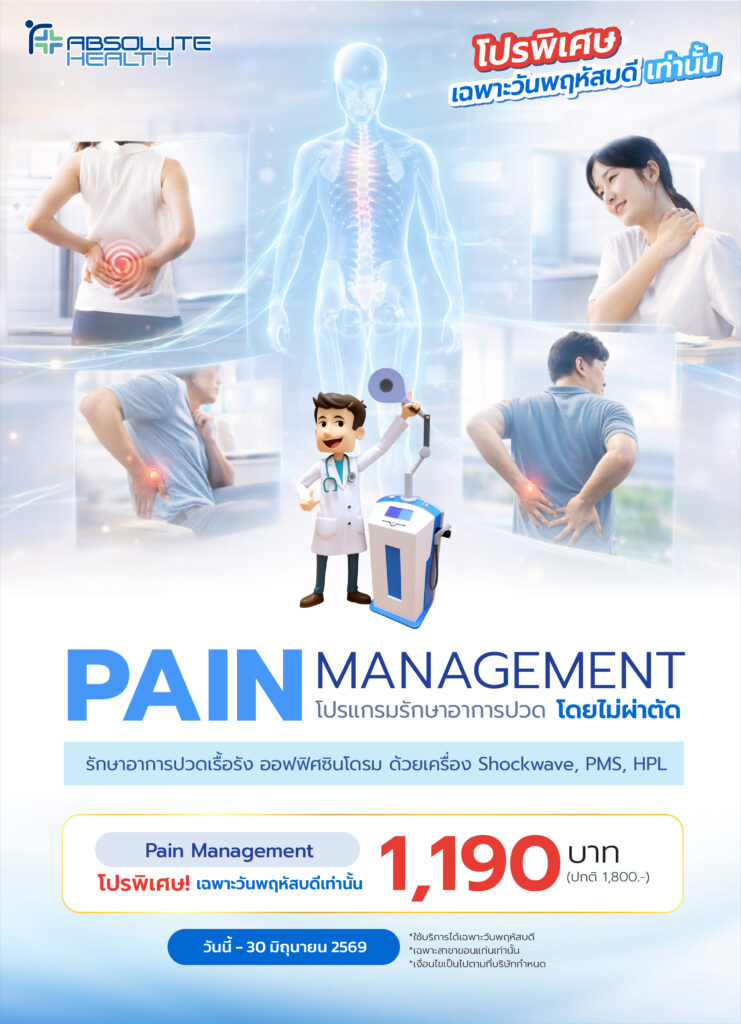 Pain Management (โปรพิเศษเฉพาะวันพฤหัสบดี) โปรแกรมกายภาพบำบัดลดอาการปวด