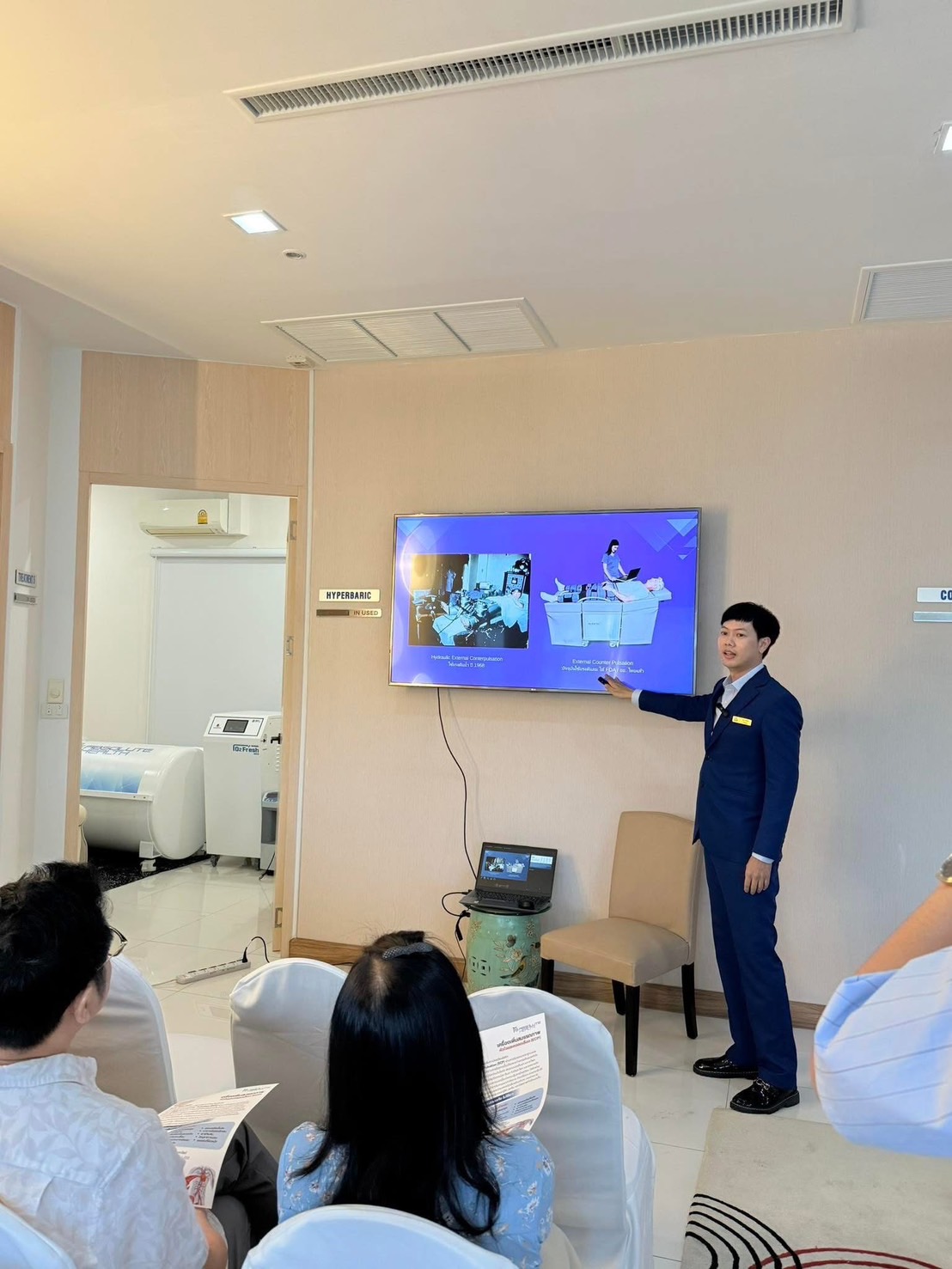 นำเสนอแนวทางดูแลสุขภาพแบบองค์รวม พร้อมให้คำปรึกษาฟรีจากทีมแพทย์ กิจกรรมนี้ได้รับความสนใจอย่างล้นหลามจากประชาชนและผู้ประกอบการในพื้นที่ สะท้อนพันธกิจของเรา